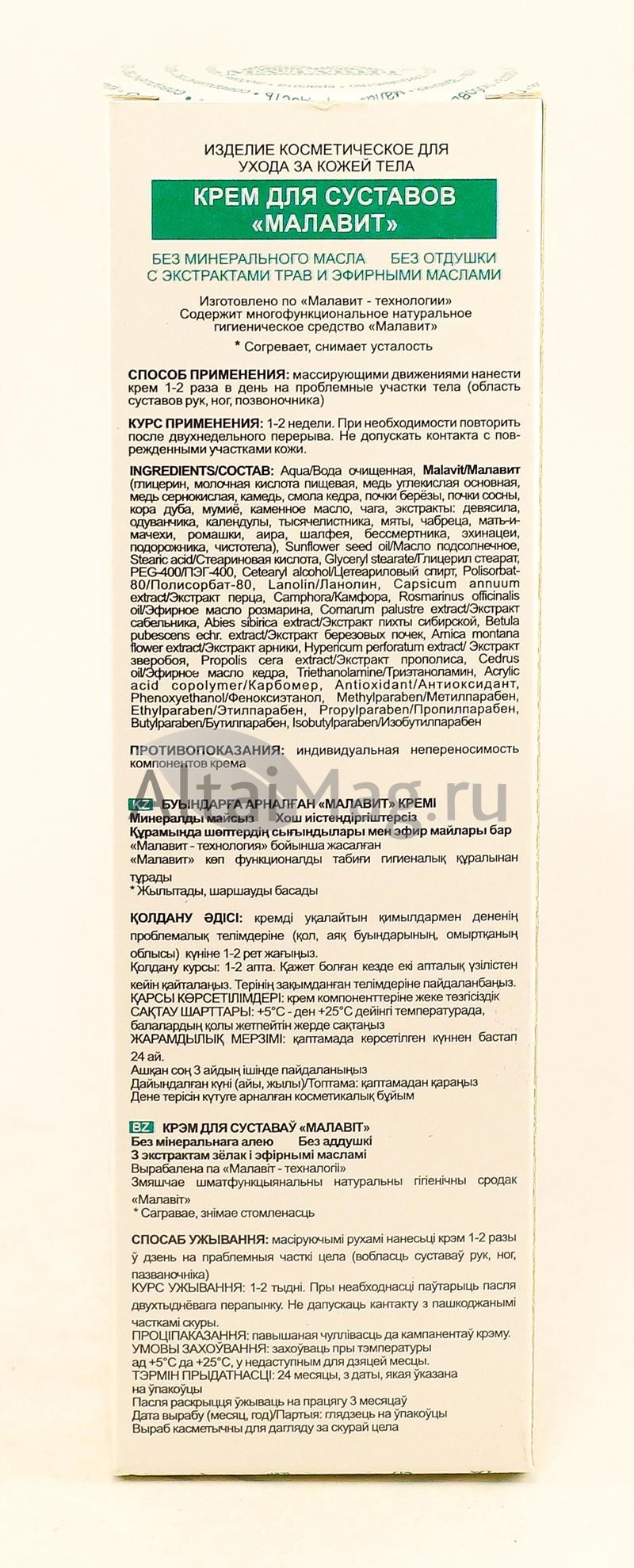 - Купите Крем для суставов Малавит 100 мл в Назрани по доступной цене 370 ₽ с доставкой на дом или заберите Ваш заказ в Назрани из ближайшего пункта выдачи, сделав заказ на AltaiMag.ru.