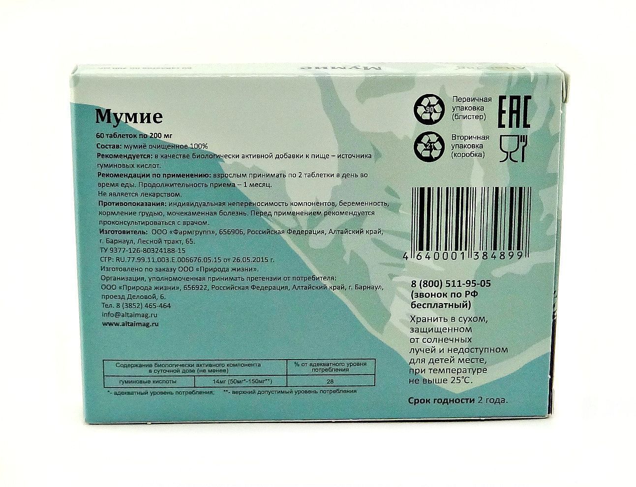 Есть вопросы по товару "Мумие АлтайМаг, 60 таблеток по 0,2 г"?