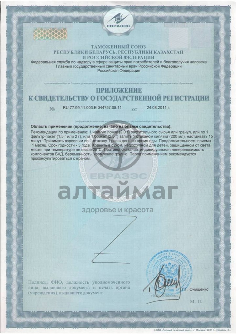 1 пакетик залить 1 стаканом кипятка, дать настояться 15 минут, принимать взрослым по 1/2 стакана теплого настоя 2-3 раза в день за 30 минут до еды.