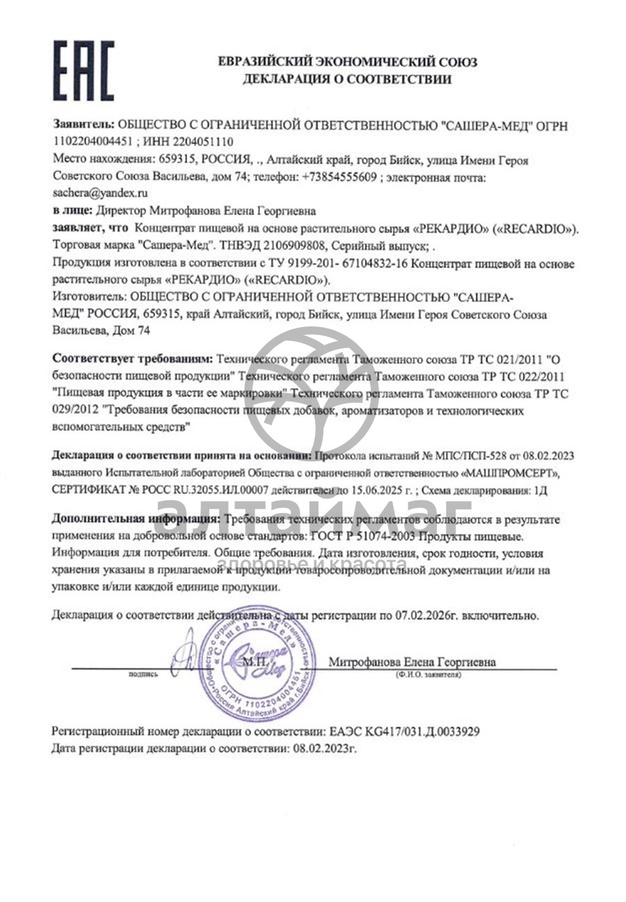 - Купите Рекардио Сашера-мед в капсулах № 20 в Назрани по доступной цене 510 ₽ с доставкой на дом или заберите Ваш заказ в Назрани из ближайшего пункта выдачи, сделав заказ на AltaiMag.ru.