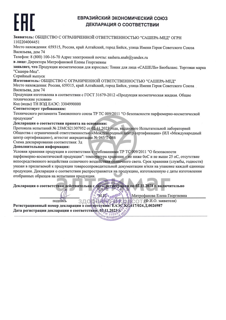 - Купите Сашель Биобаланс Тоник для лица, 50 мл в Назрани по доступной цене 249 ₽ с доставкой на дом или заберите Ваш заказ в Назрани из ближайшего пункта выдачи, сделав заказ на AltaiMag.ru.
