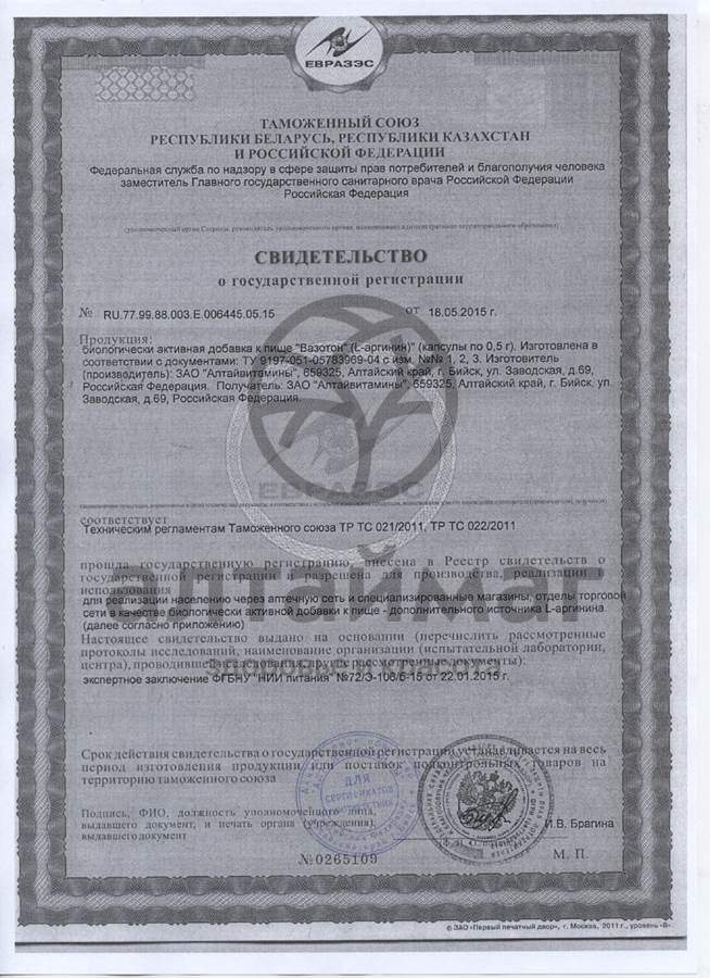 Для этой цели фармацевтической компанией «Алтайвитамины» была создана биологически активная добавка Вазотон, содержащая 100 % L-аргинин.