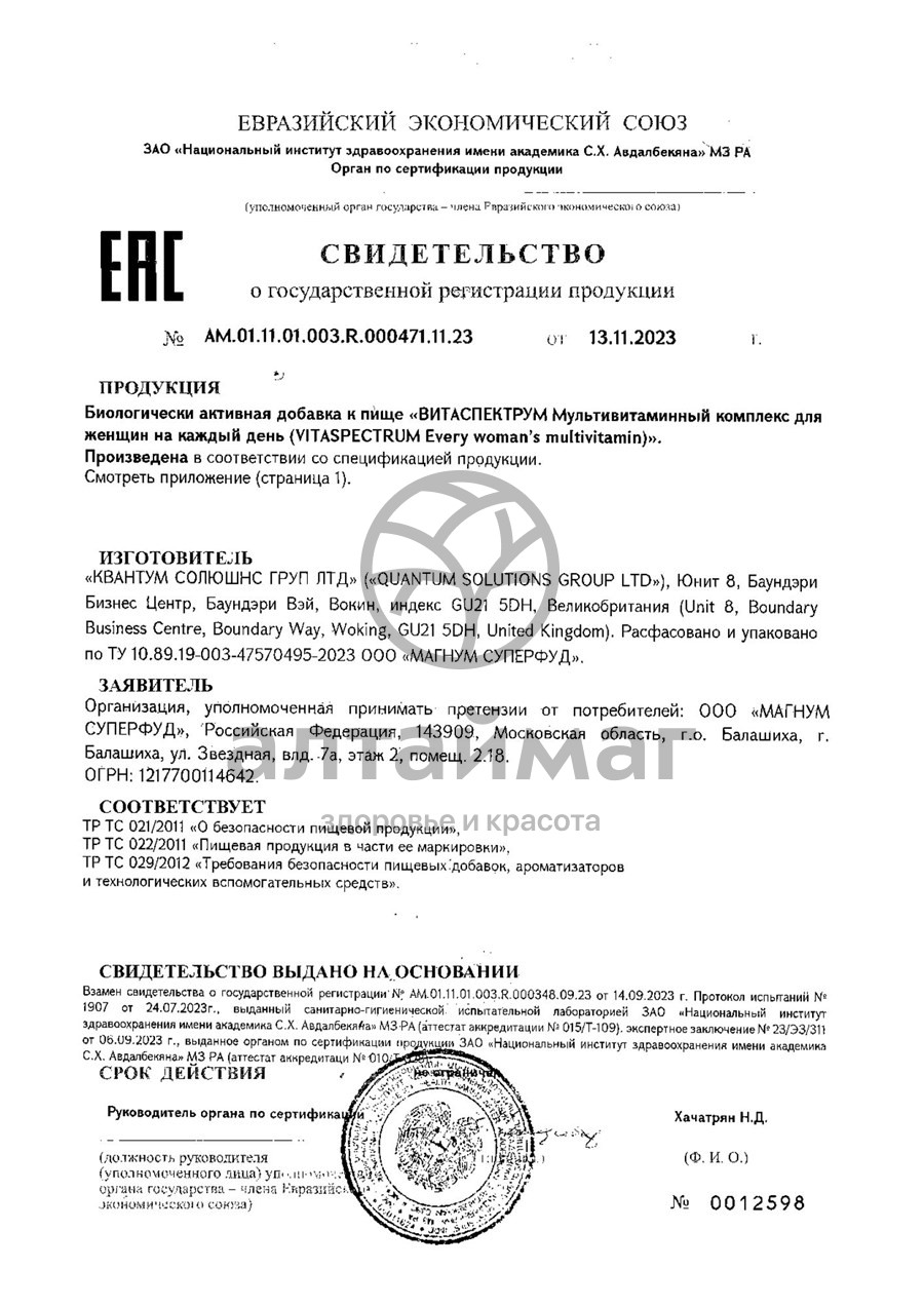 - Купите Витамины для женщин VitaSpectrum 60 таблеток в Назрани по доступной цене 785 ₽ с доставкой на дом или заберите Ваш заказ в Назрани из ближайшего пункта выдачи, сделав заказ на AltaiMag.ru.